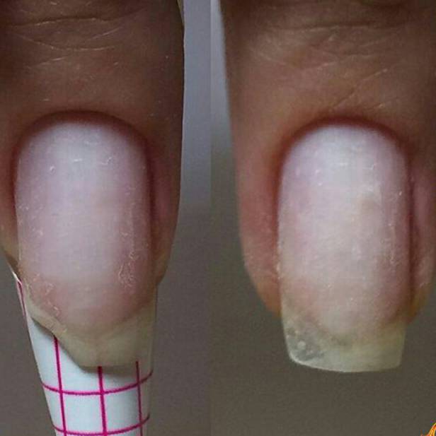 При использовании не стерильных инструментов при наращивании ноготков, могут появиться различного рода инфекции, которые нарушают природную целостность натурального ногтя. При повреждении гелевого или акрилового слоя на ногте, появляется небольшой зазор(завоздушина), который является идеальной средой для размножения болезнетворных грибков и микроорганизмов. Если повреждённый ноготок не освободить от искусственного слоя, то это может привести к негативным последствиям.