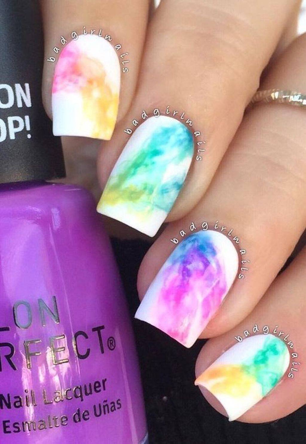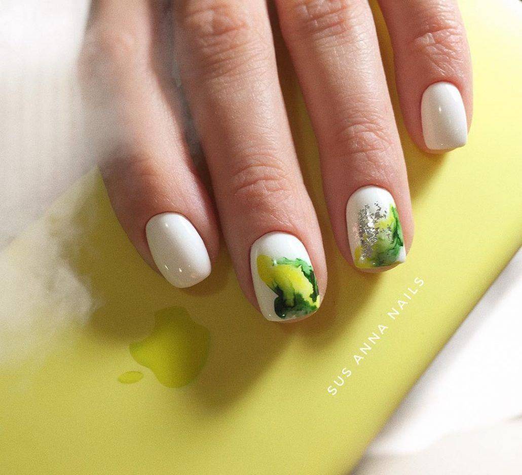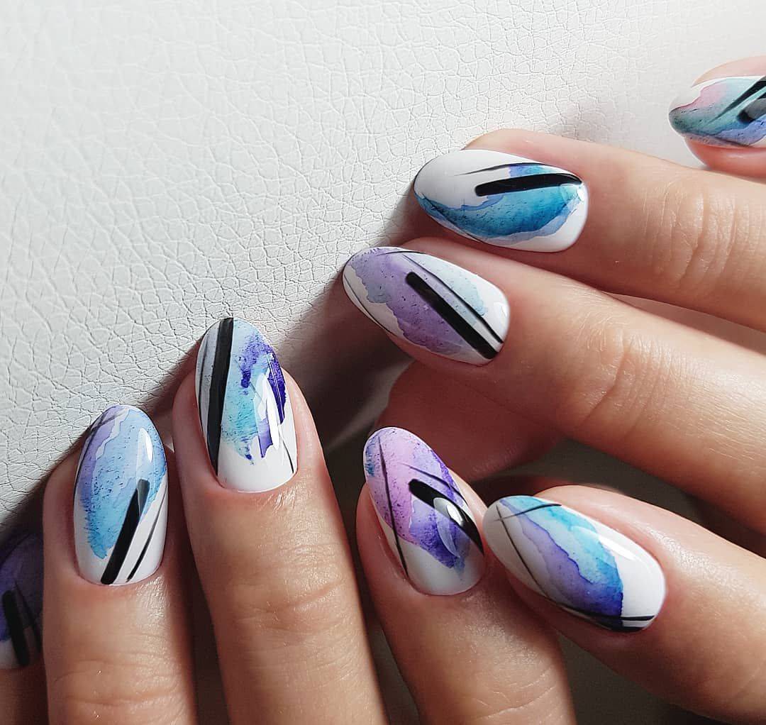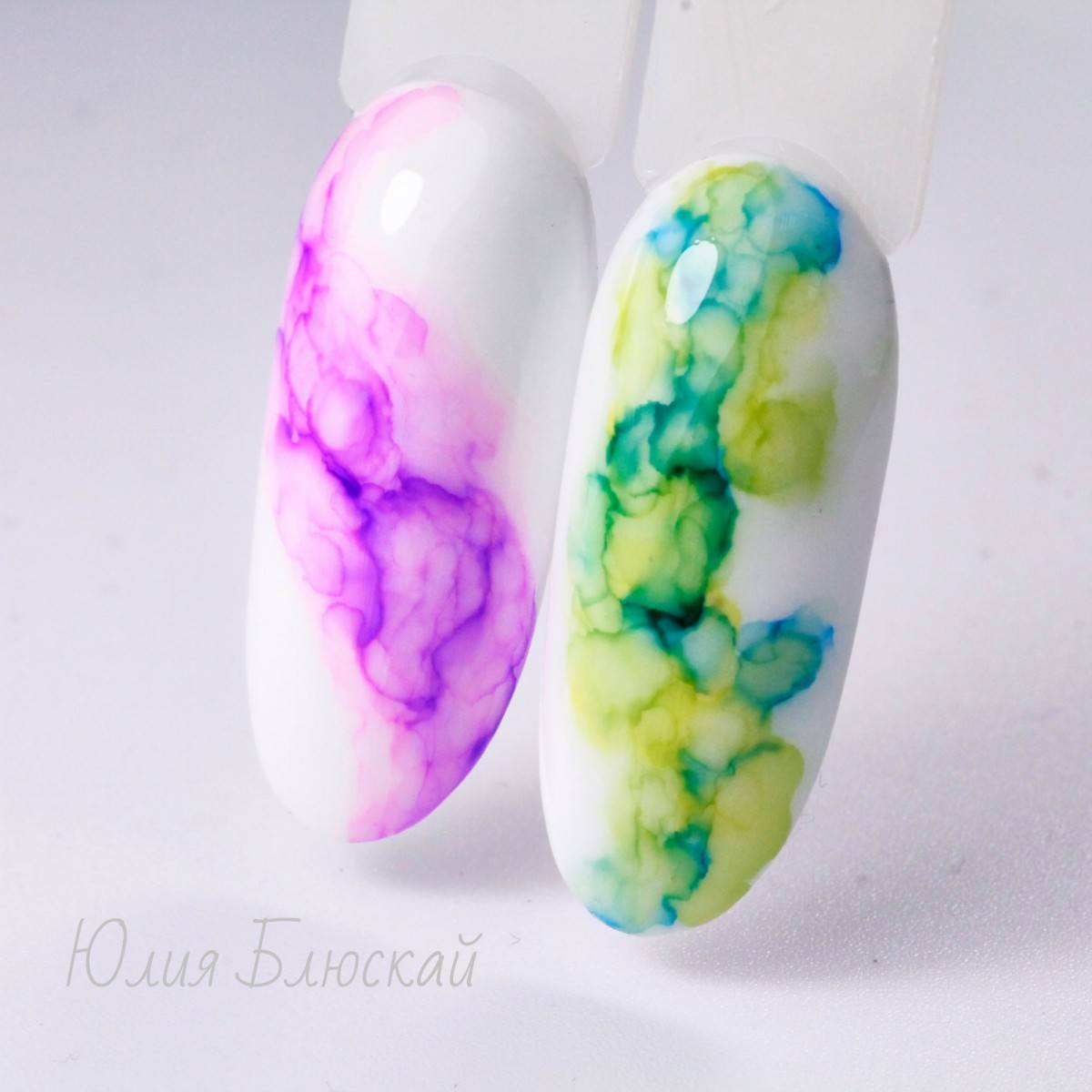 Прием вытягивания и растушевки используется и в технике акварели. Получил он такое название благодаря внешнему сходству с одноименным стилем живописи. Все приемы, используемые в нейл-арте, позаимствованы оттуда же. Делается такой дизайн на белом, или просто очень светлом фоне.