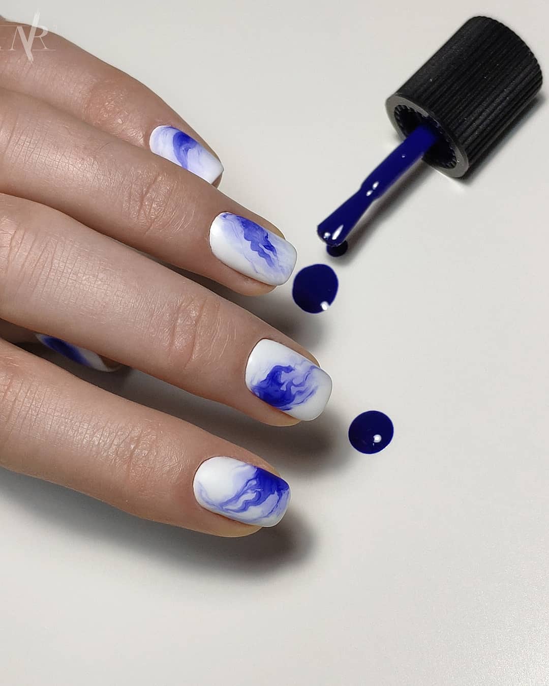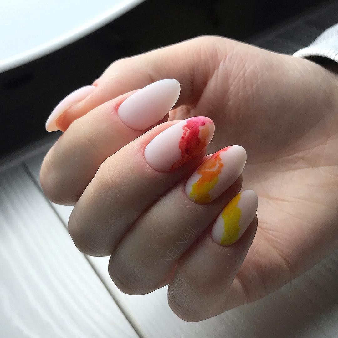 Маникюр с разводами легко создать самостоятельно, он выглядит оригинально и нестандартно. Разводы на ногтях – прекрасный способ разнообразить однотонный нейл-арт как в глянцевом, так и в матовом исполнении. Если вы еще не выполняли на своих ноготках трендовый дизайн с разводами, то самое время «примерить» его и понять насколько красиво и стильно он выглядит.