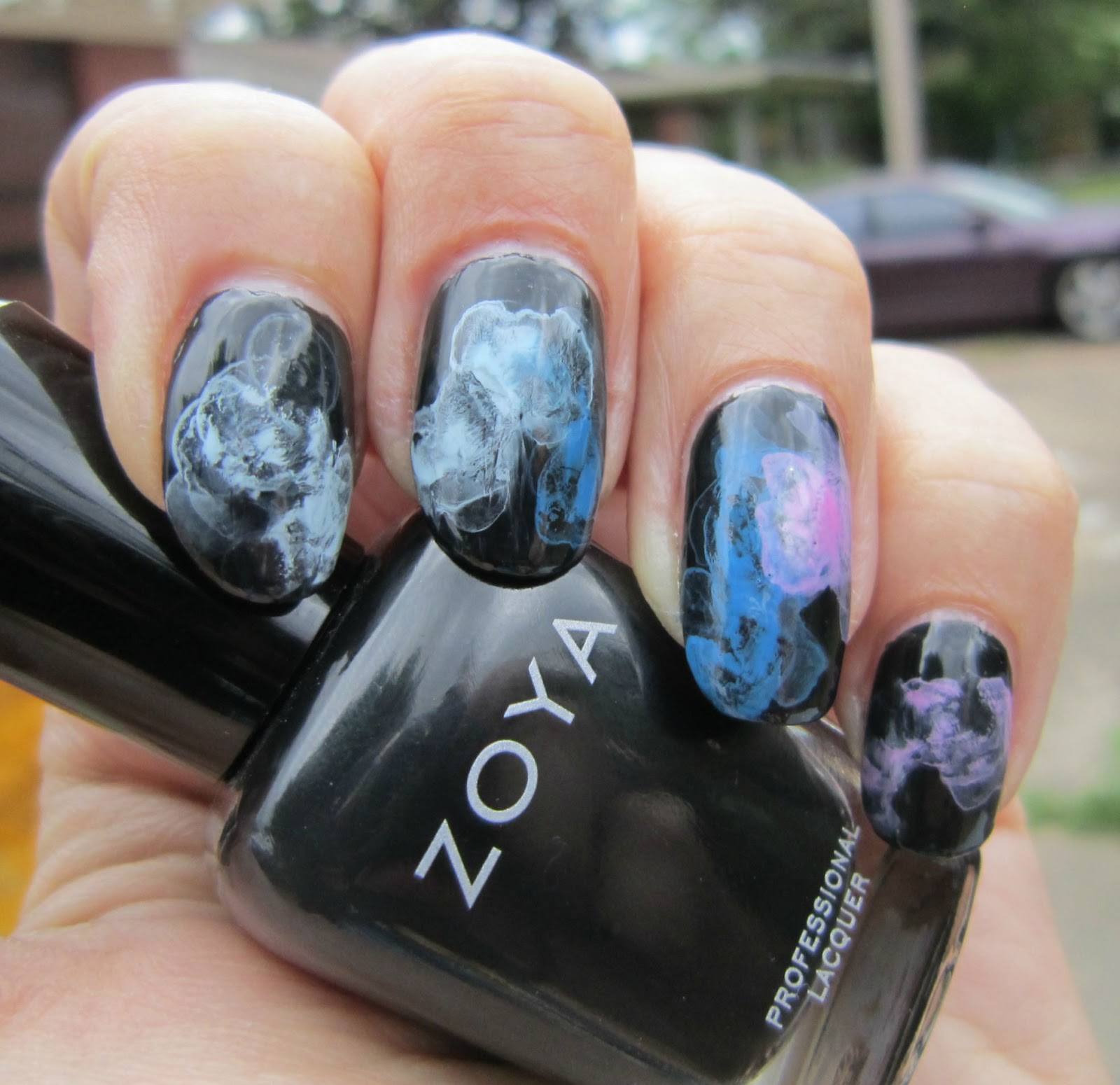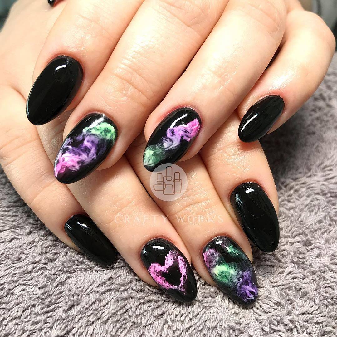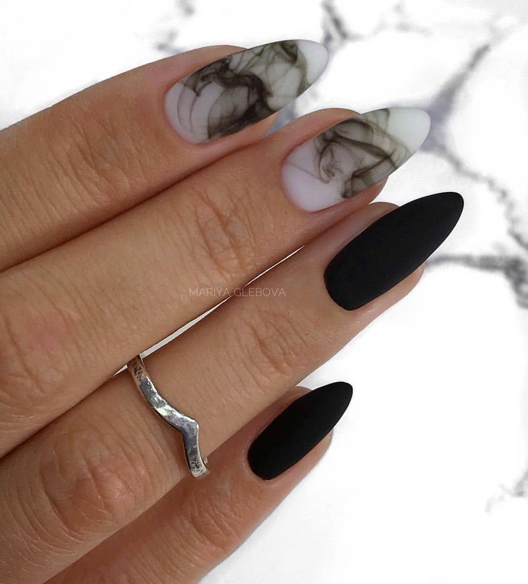 Разводы на ногтях часто имеют хаотичный порядок, но можно создать такой нейл-арт, чтобы он напоминал красивый дымок, например, от костра или сигареты. Дымка на ногтях смотрится интересно и необычно, но создать такой узор будет сложнее, чем абстрактные разводы.