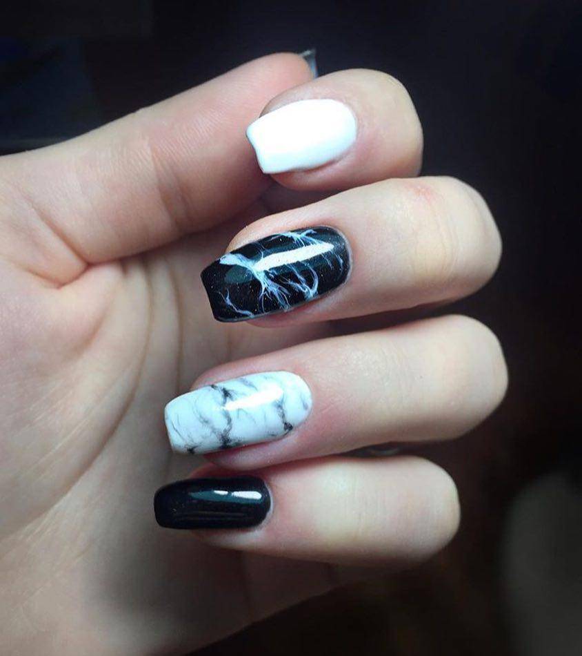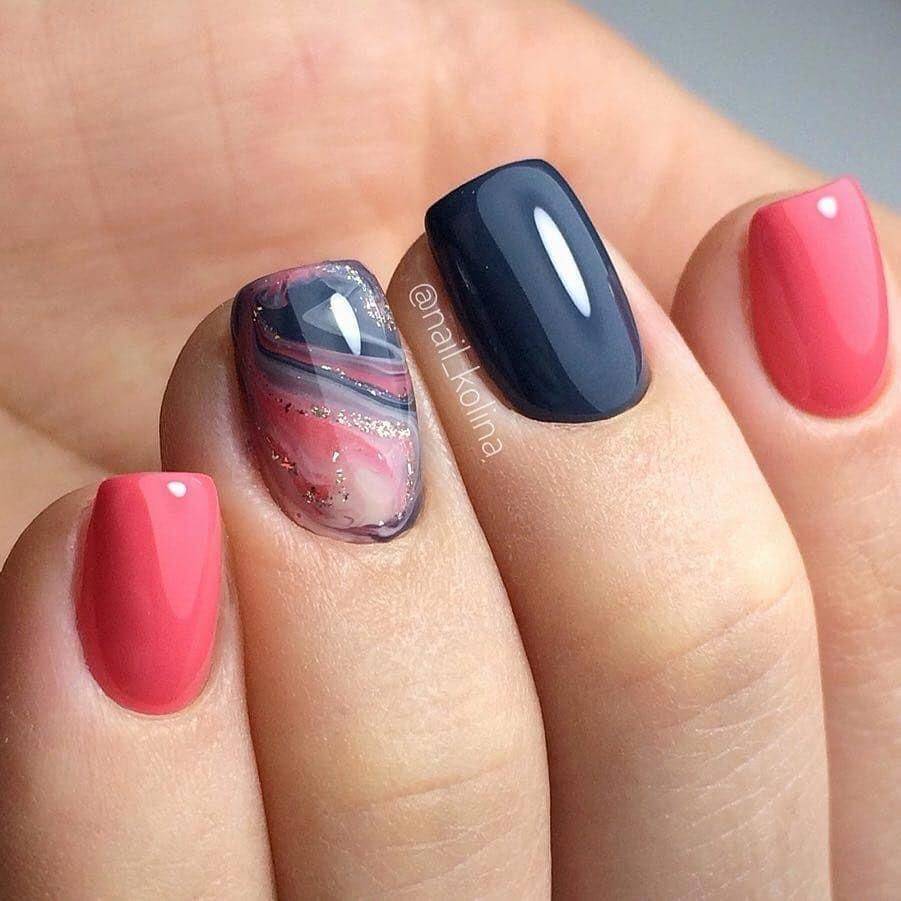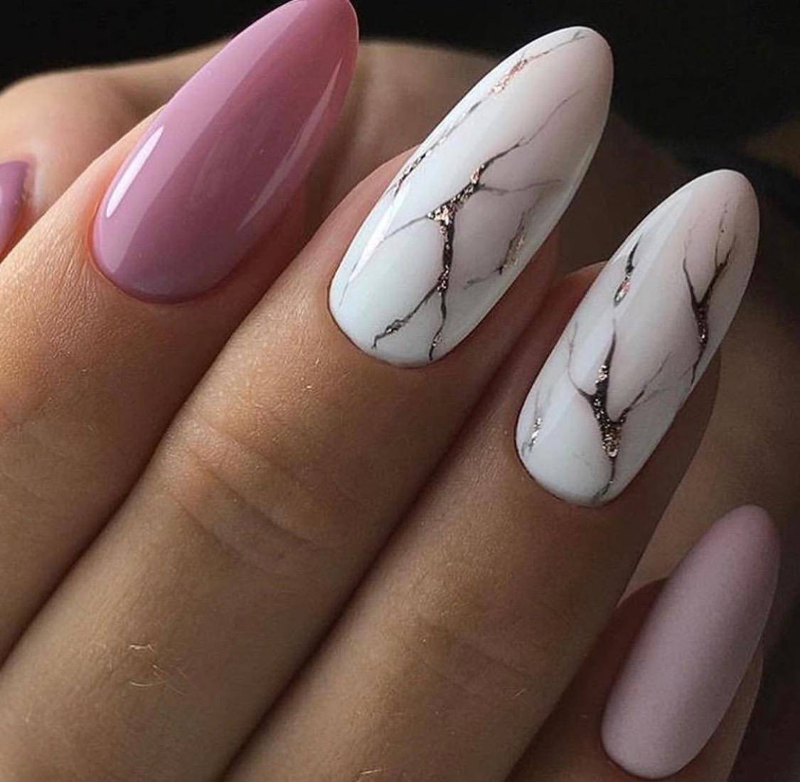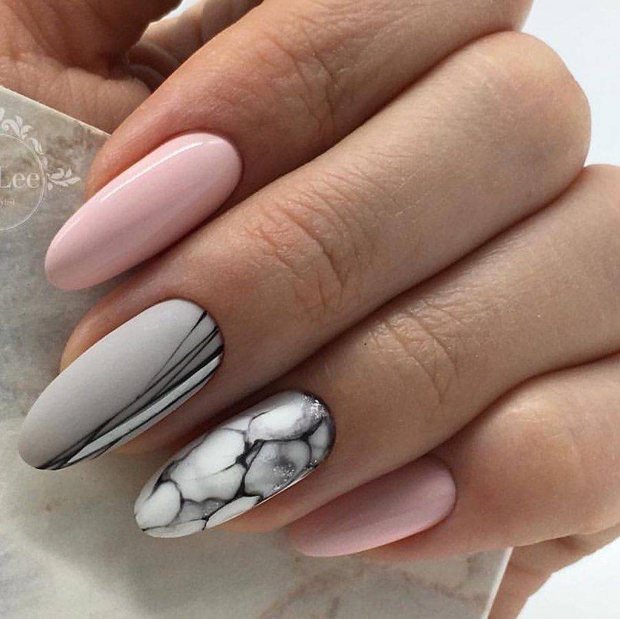 Симпатично смотрится покрытие под мрамор не на всех пальцах, а, например, только на безымянном и среднем.