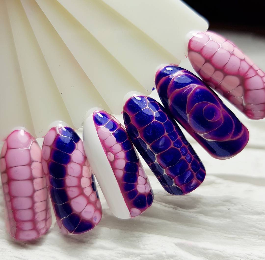 При всей кажущейся незамысловатости разводы на ногтях гель-лаком выглядят очень оригинально. Придумывая такой дизайн, вы можете проявить всю свою фантазию. У кого-то разводы гель-лаком будут напоминать морские волны. У других рисунок будет выполнен в анималистическом стиле. У третьих дизайн гель-лаком с разводами будет похож на абстрактное полотно.