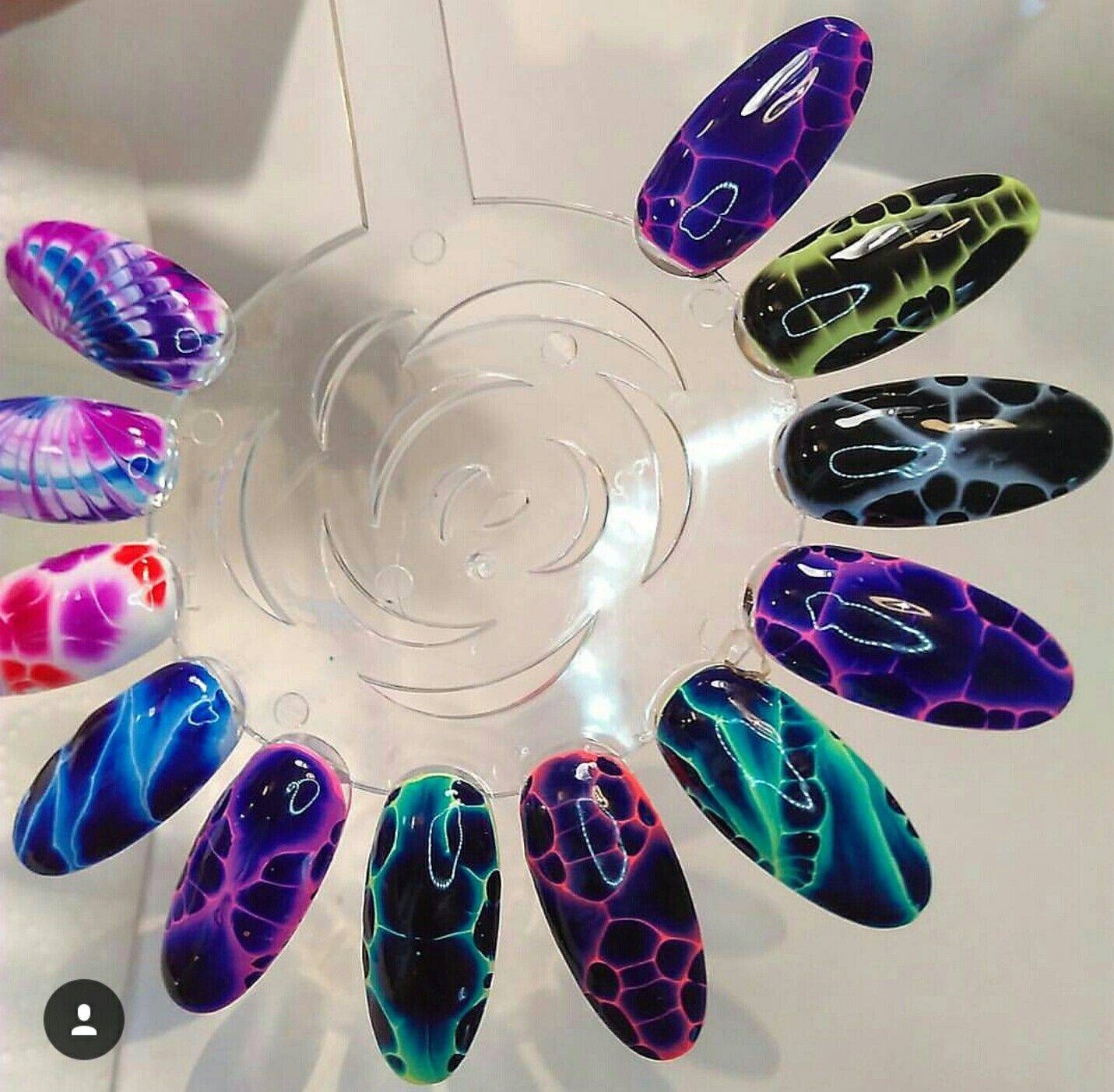 После того, как вы капните все лаки, возьмите иголку или зубочистку и хаотичными движениями создавайте желаемый рисунок
