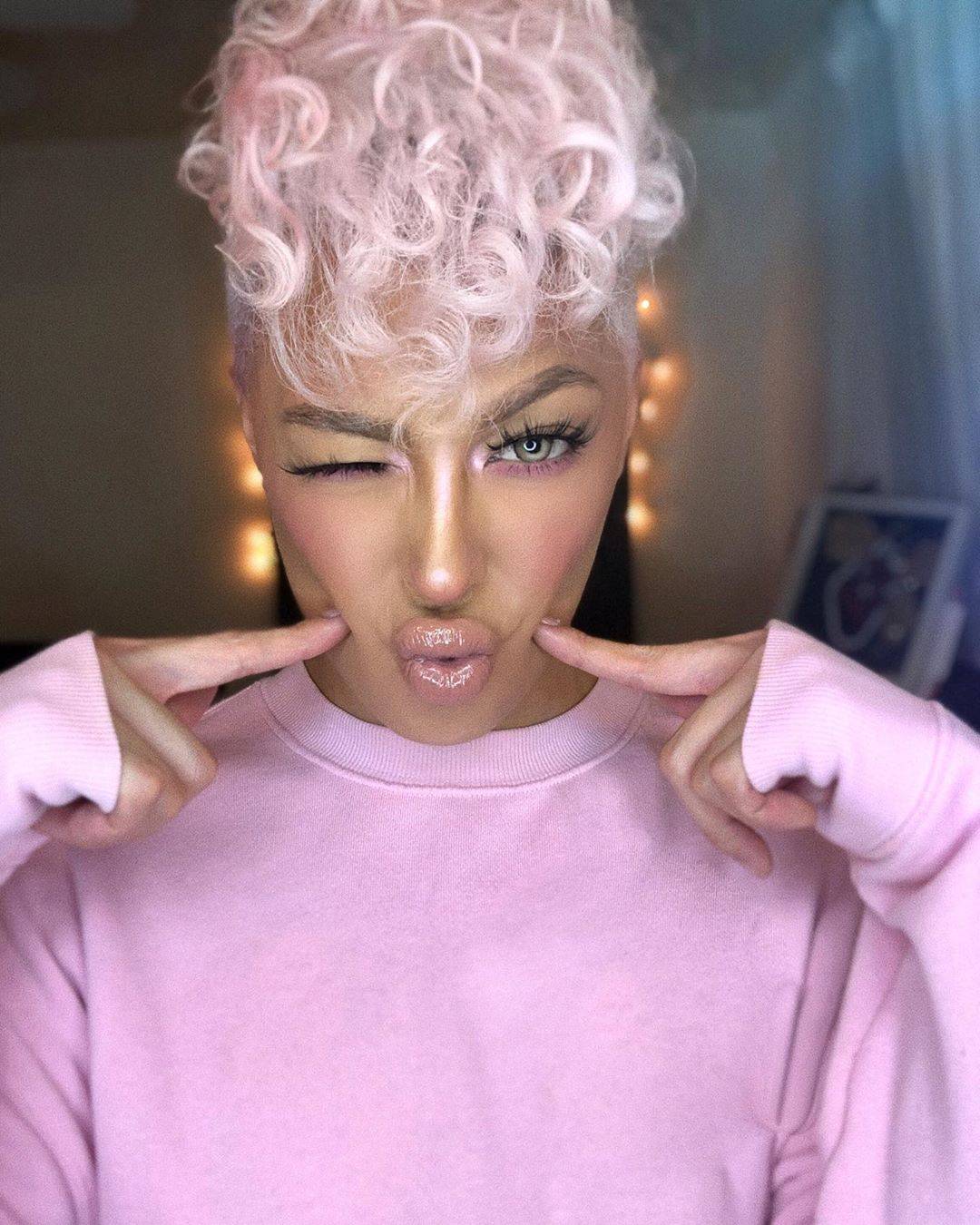 Нежно-розовые волосы хорошо сочетаются в макияжем в тон. Credit: Rex by Shutterstock