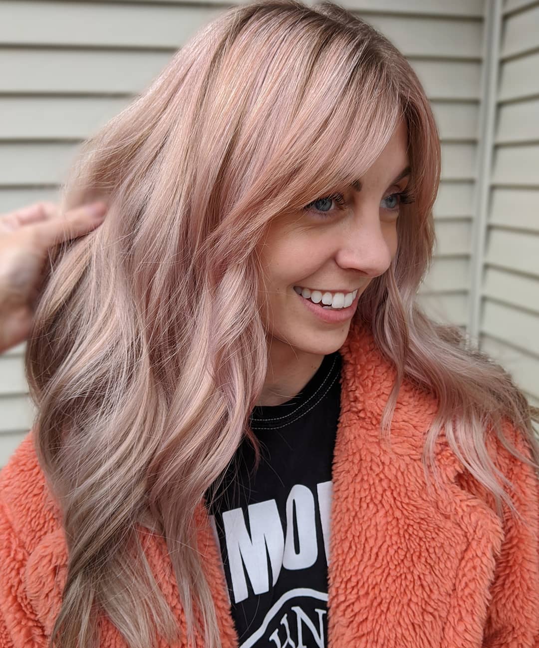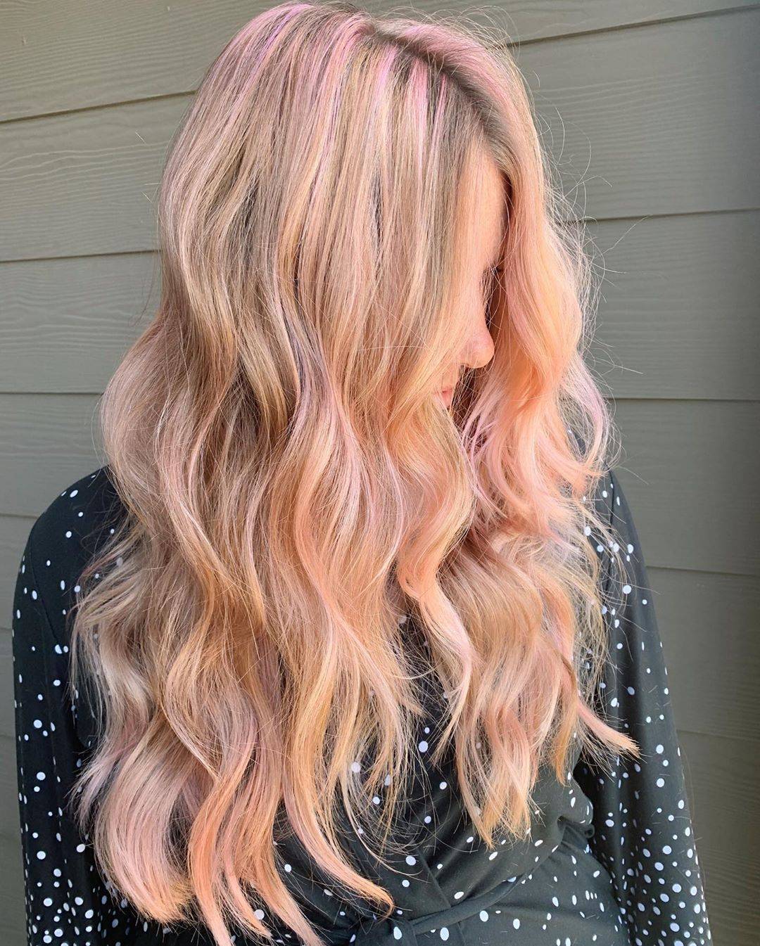 Цвет волос розовое золото на светлых прядях