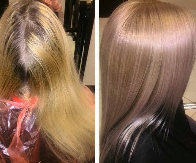 Для этого есть спектр средств, разработанных для того чтобы нейтрализовать желтый пигмент в волосах: