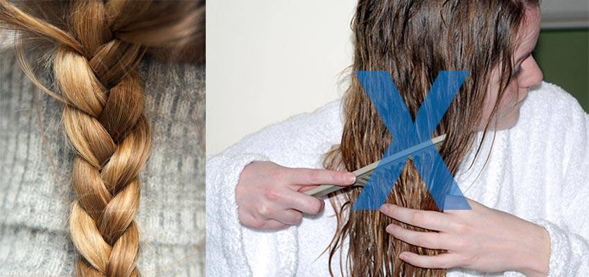Нельзя расчесывать мокрые волосы. Лучше всего подождать пока они высохнут.