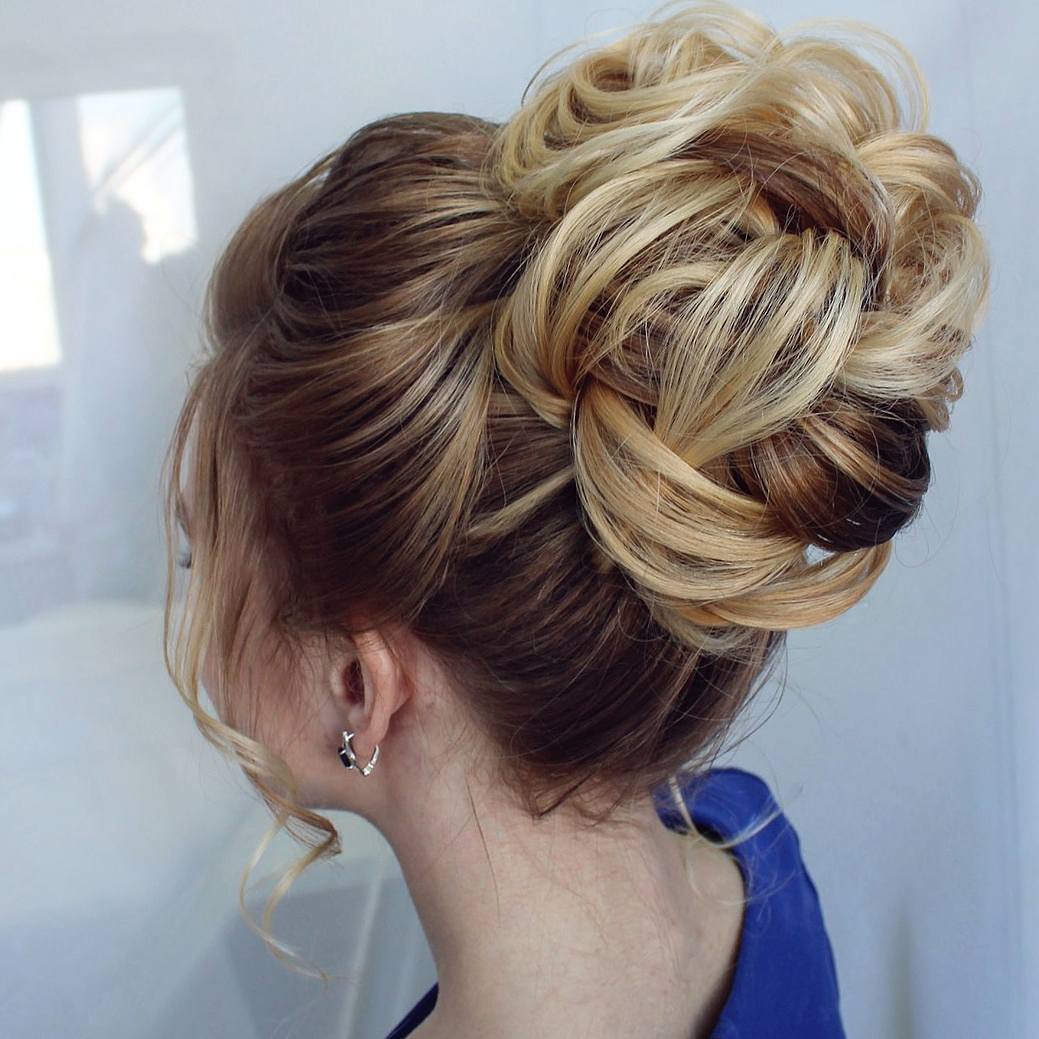 - Обладательницам высокого роста не идет объемный пучок, сделанный на самой макушке. С ним девушка кажется еще выше, что со стороны выглядит довольно комично.