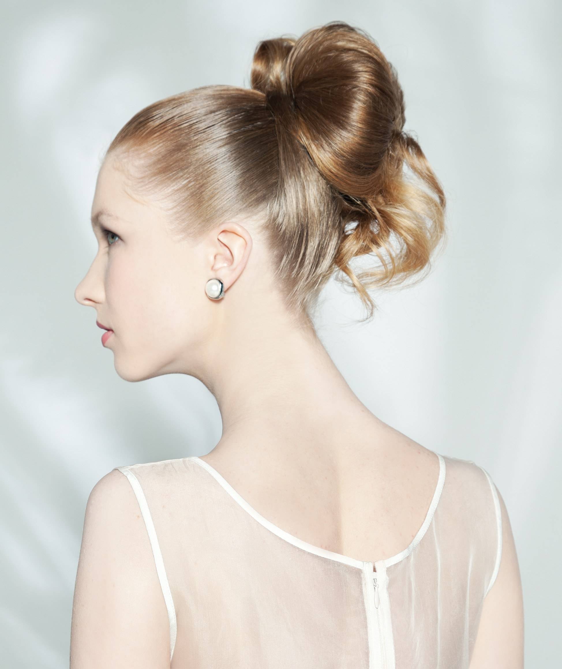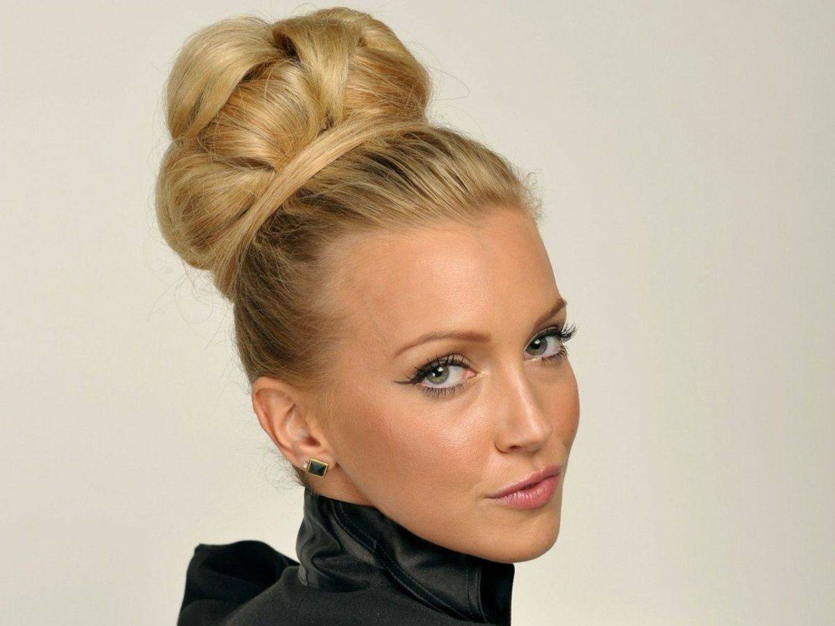 - Дамам с широкими скулами и резкими чертами лица не идет прическа пучок на самой макушке, лучше сделать ее чуть ниже.