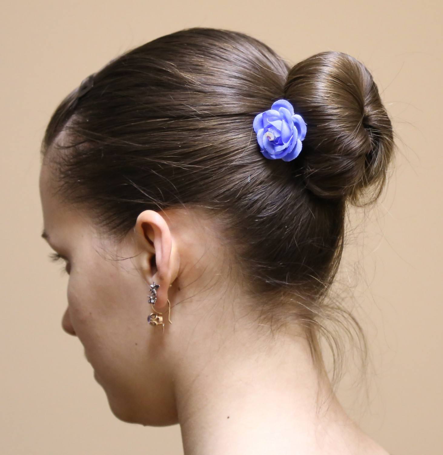 Довольно популярное украшение на гладкий пучок – заколки с крупными украшениями (например, в виде цветов, звезд, животных и других предметов, варианты слишком разнообразны, чтобы можно было перечислить хотя бы большую их часть). Гладкие волосы и яркая заколка, сверкающая на солнце – и вы получаете прекрасный образ.