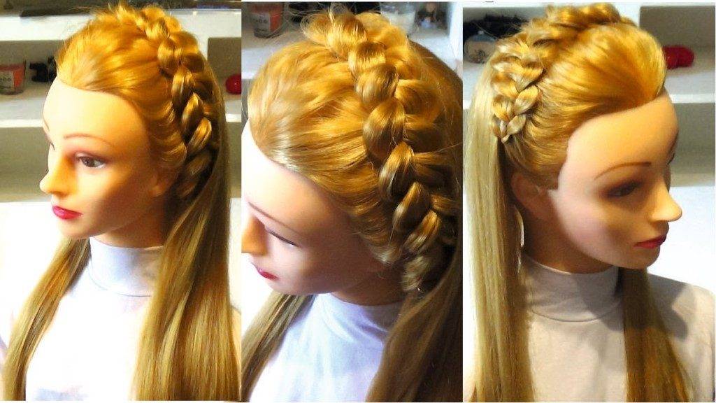 Но есть варианты и полностью собранных причесок с объемными косами – фото демонстрирует шикарные решения для длинных и средних волос в виде французских кос: