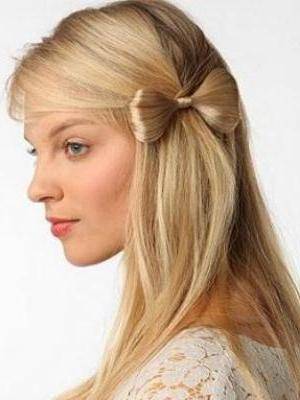 Оригинально и кокетливо выглядит бант из волос. Его можно сделать на макушке, на затылке или даже сбоку. Такая прическа не требует дополнительных аксессуаров, она и без них выглядит броско, ярко и эффектно.