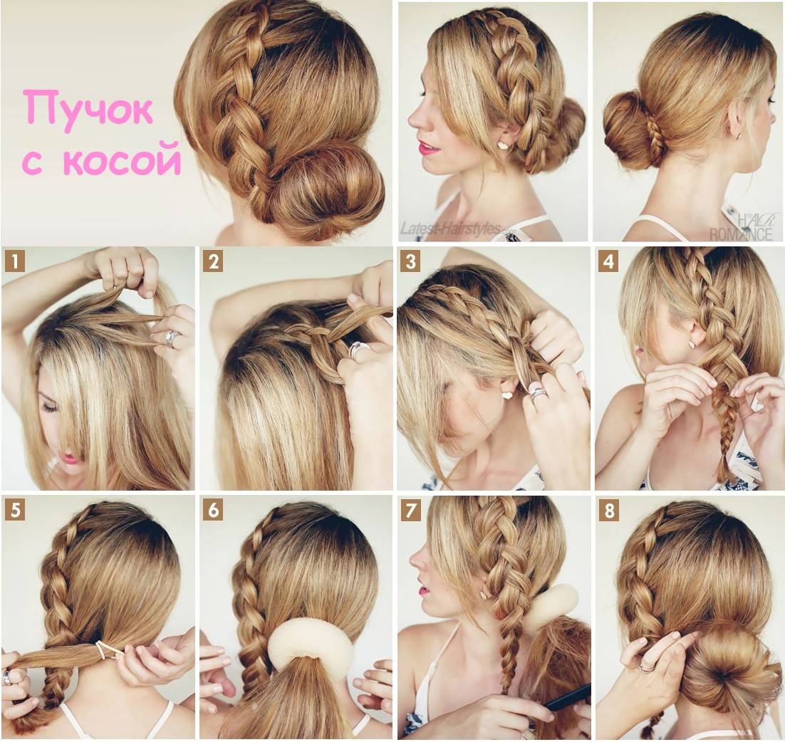 В этой статье мы опишем самый популярный вид пучка с плетением, сделанный при помощи пончика: