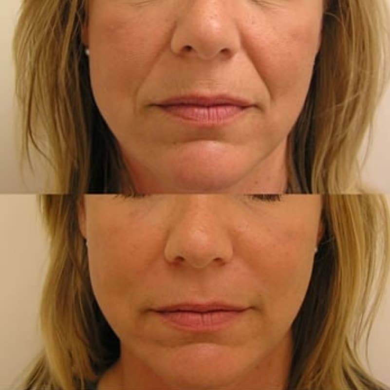 Это самая часто обрабатываемая зона, потому что заломы, идущие от ноздрей к уголкам рта, появляются раньше других морщин, подчеркивают возраст женщины, делают лицо уставшим и печальным. Преимущественно используются гиалуроновые филлеры в носогубные складки, как максимально безопасные и эффективные. Основой таких наполнителей являются определенные бактерии и петушиные гребешки. Натуральную гиалуроновую кислоту химически модифицируют, связывая ее молекулы в цепочки, что обеспечивает стабильность вещества и медленное рассасывание.