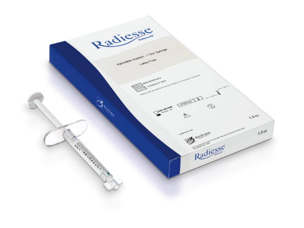 Radiesse (Радиесс) — продукт для контурной пластики разработан производителем BioForm Medical, зарегистрированным в США, но сейчас выпускается немецкой маркой Merz. Радиесс получил одобрение надзорного органа FDA, следящего за качеством медикаментов, что говорит о его безопасности. Гидроксиапатит кальция — минерал, который присутствует в человеческих клетках, стимулируя в клетках синтез нового коллагена. Биологически активное вещество восполняет объем, разглаживает рельеф в проблемной зоне.