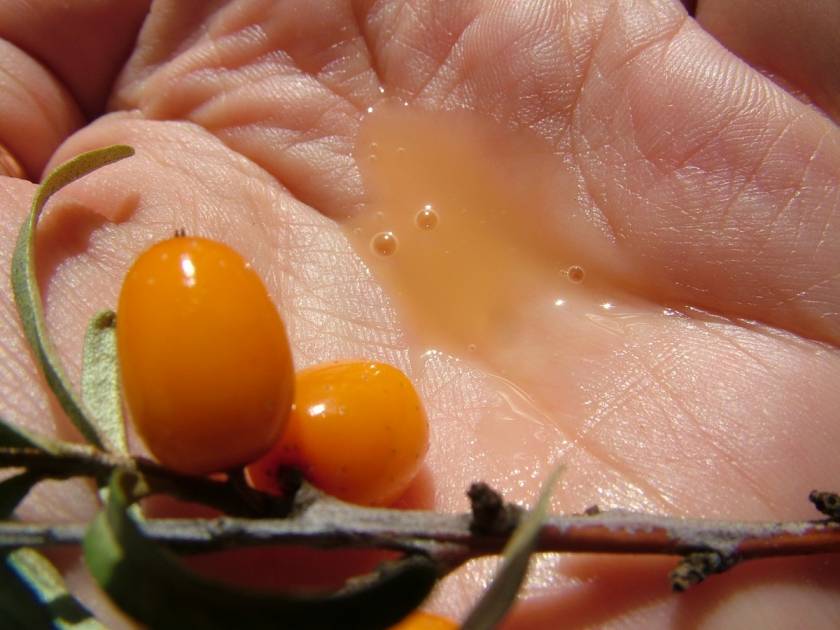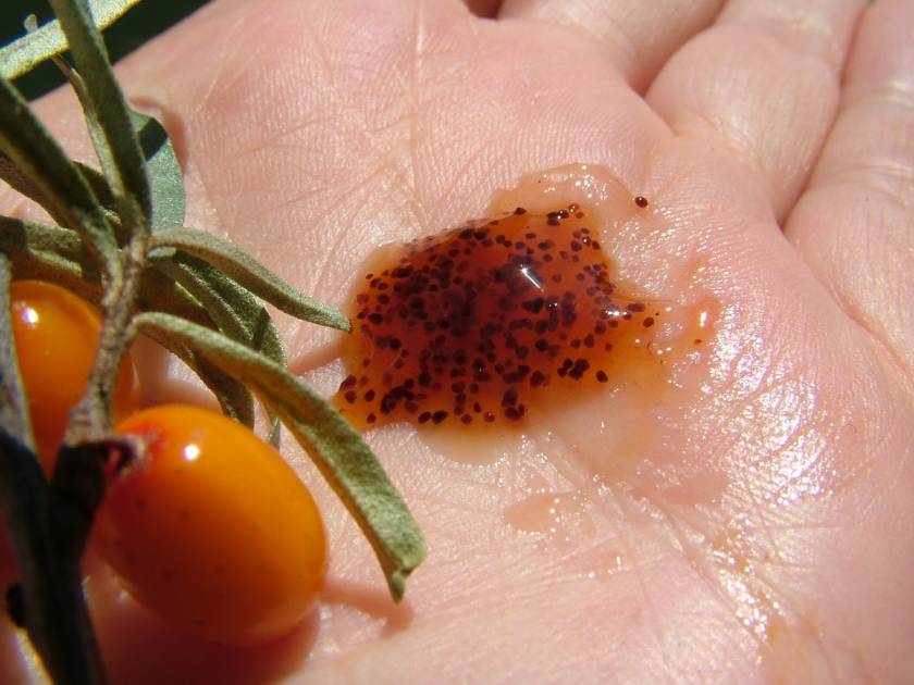 Он густой, липкий, все эти косточки еще надо как-то до кожи головы домассировать. В общем, нужно прилагать несколько больше усилий, нежели с солью, чтобы скрабировать им голову. И какое-то время я просто использовала как скраб для тела (тоже вполне нормально, скрад-да-скраб, только с ароматом облепихи).