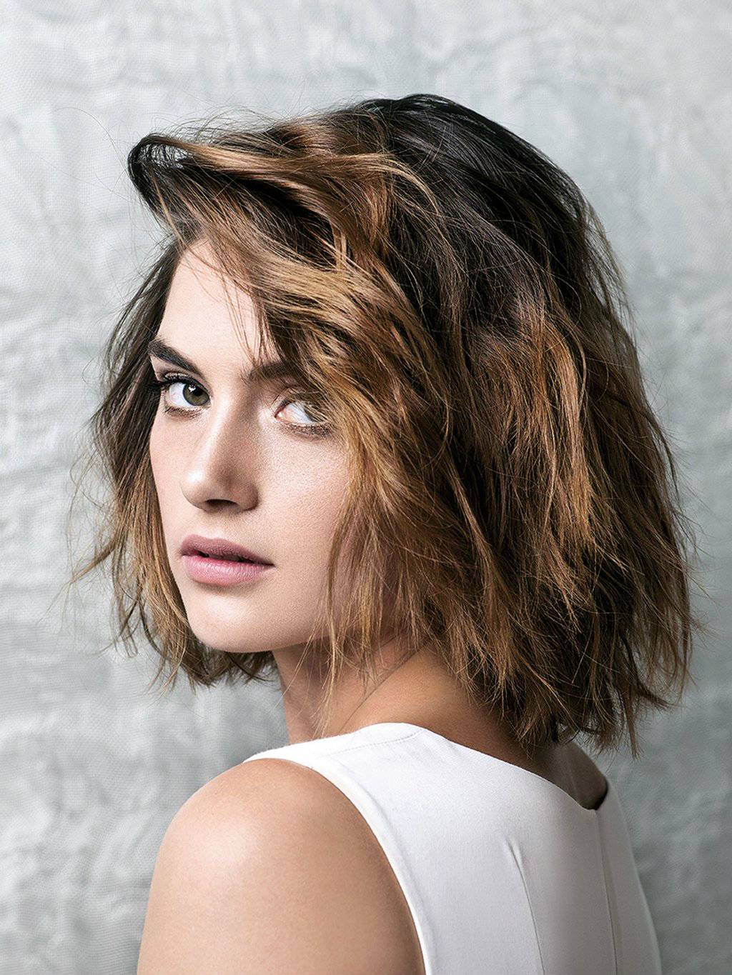 Идеальная длина – средняя, форма прически – рваная, многослойная (варианты: каскад, лесенка, боб). Можно также сделать косую, густую челку.