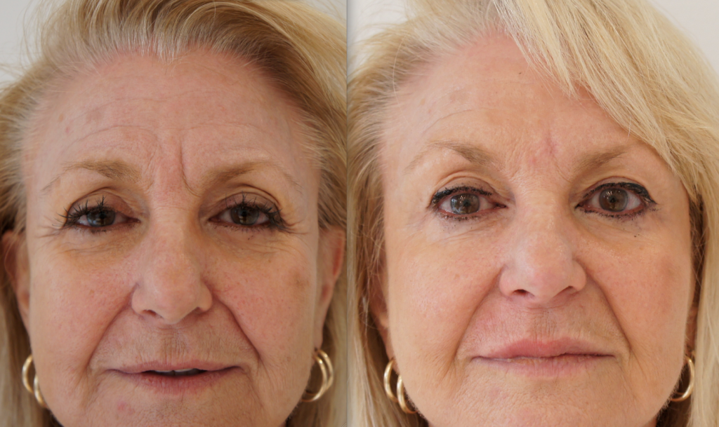 А на этом фото – эффект от инъекций ботулотоксина сразу в межбровье и в лоб: