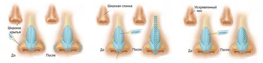 Область носа обрабатывается антисептиком, а затем подкожно вводят филер. Вся процедура занимает около получаса, после чего пациент может отравляться домой.