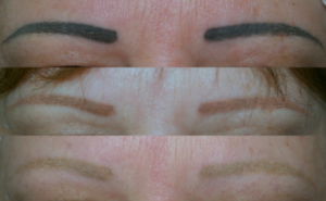 Устранение красящего пигмента с бровей при помощи неодимового лазера, работающего по принципу селективной фотокавикации, позволяет удалить нанесенный ранее татуаж за несколько сеансов практически бесследно.
