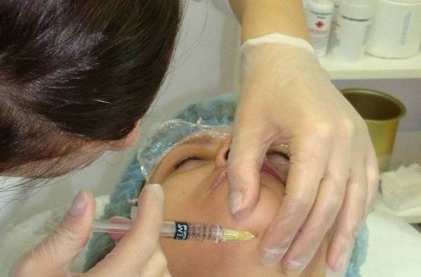 Во время инъекций в области лица применяются специальные средства, которые снижают болезненность процедуры и устраняют возможные покраснения и отеки.