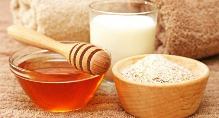Самая простая, но от этого не менее эффективная процедура. Следует смешать жидкий мед 1 ст. л. и овсяные хлопья 1 ст. л. Получится густая масса, которая прекрасно ложится на кожу. Подойдет для всех типов кожи.