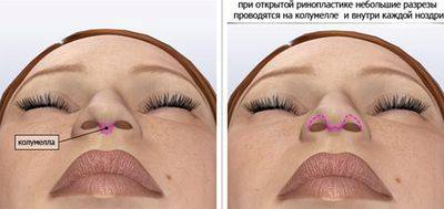 Если на кончике носа наблюдаются эстетические дефекты, пластический хирург оперативным методом корректирует расположение мягкой ткани, колумеллы и хряща, расположенного в носовой области. В ходе операции от носовой полости и костей отделяется мягкая ткань, изменяется форма кончика носа.