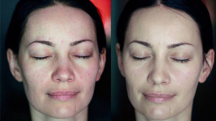 Последний этап процедуры пилинга предусматривает нанесение тонального крема, который имеет в своей основе глину. Она помогает дополнительно защитить травмированные части кожи и снимет немного покраснение. Тональный крем нельзя смывать в течение суток.