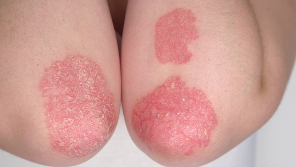 Врачи говорят, что появившиеся красные пятна на локтях и коленях, как на фото, могут быть результатом ниже перечисленных заболеваний.