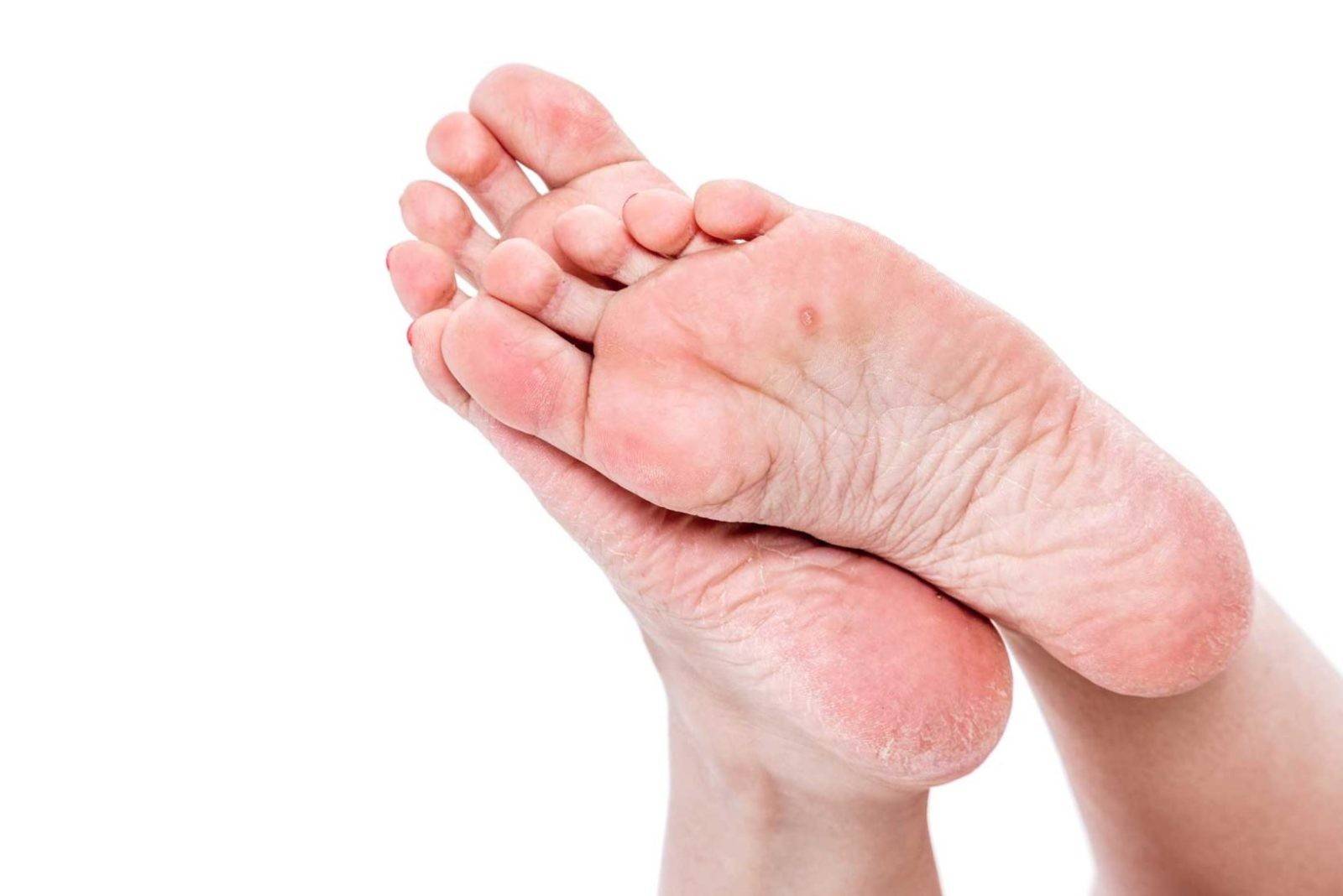 В случае обнаружения сухой кожи на ногах, трескающихся и шелушащихся пяток, которые еще и облазят, это может указывать на нарушение восстановления клеток.