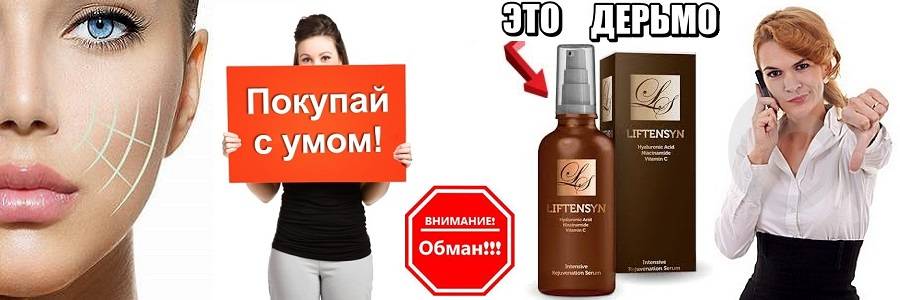 Ознакомившись со свойствами, женщины, желая сохранить свою красоту, молодость, покупают продукцию данной компании. Но иногда при использовании, они не получают желаемого результата. Тогда складывается в них негативное мнение, что Liftensyn – это развод. Если косметика не помогла справиться с проблемами старения, не разгладило морщины, то сыворотка абсолютно бесполезная. Они считают, что если liftensyn им не принес результата, значит это обман, а компания, по производстве средства, просто лохотрон. Естественно, нормальная реакция в таком случае — написать отрицательный отзыв на сайте, тем самым указать на неэффективность средства. Но на самом деле, причина в другом.