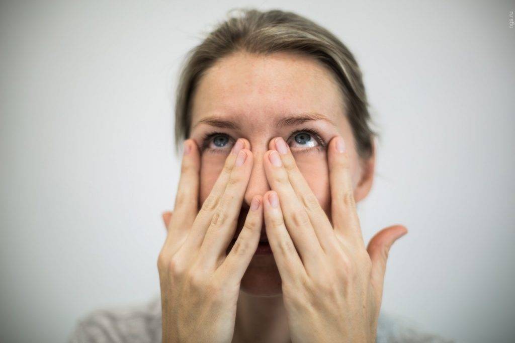 • Необходимо немного придавить уголки глаз при помощи двух пальцев. Глаза требуется сильно закрыть, подержать в таком состоянии 3-4 секунды, а затем широко раскрыть. Под поверхностью пальцев может ощущаться легкое подрагивание мышц;