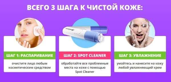 Домашний очиститель не доставляет трудностей, поэтому используют его даже новички. Очиститель пор Spot Cleaner имеет алгоритм применения: