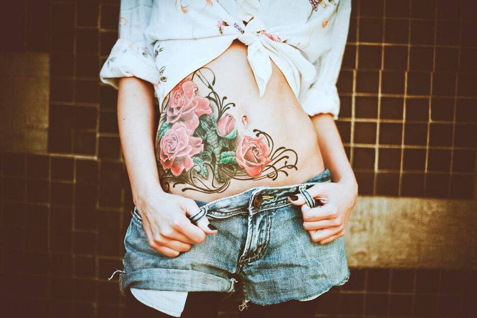 Растяжки расположены по всему животу? Значит, нужна большая татуировка.