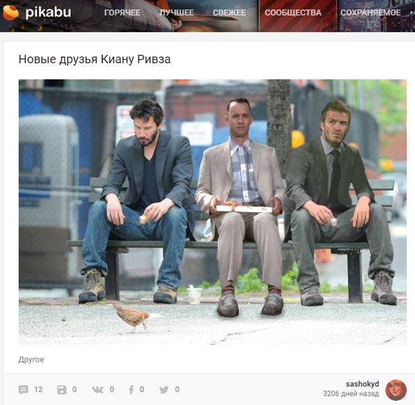 Особенную известность приобрели фотографии, где актер в одиночку сидит в парке с сэндвичем. Эти фото стали мемом и получили название «Грустный Киану».