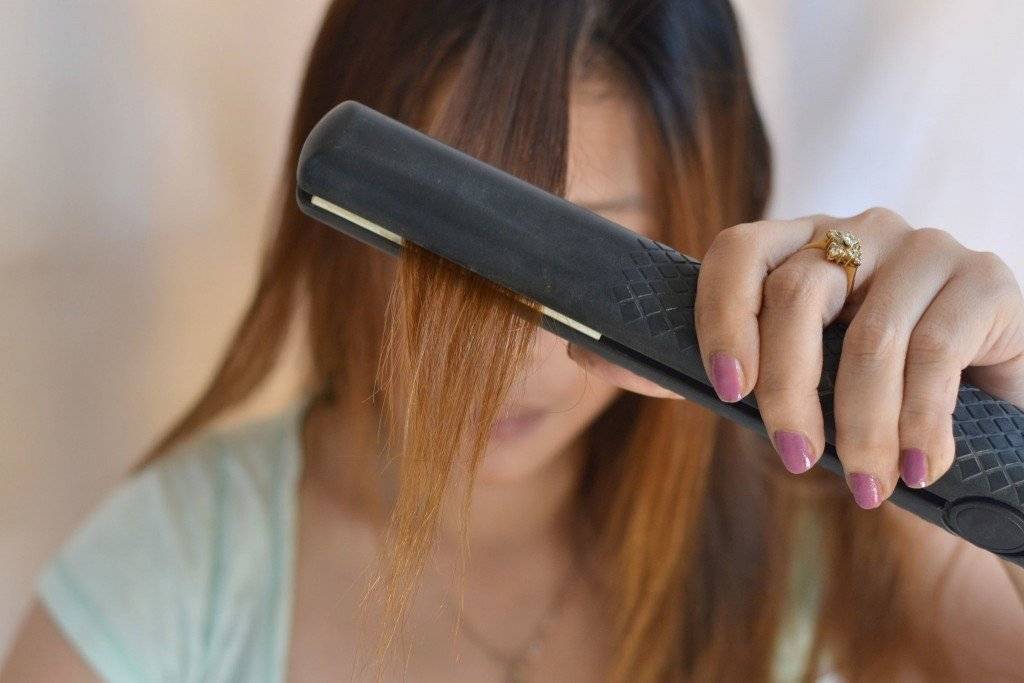 - Утюжок или плойка для укладки волос. Для этого следует нагреть устройство до максимальной температуры и обработать каждую прядь волос. Обрабатывать каждую прядь следует не менее 2–3 минут.
