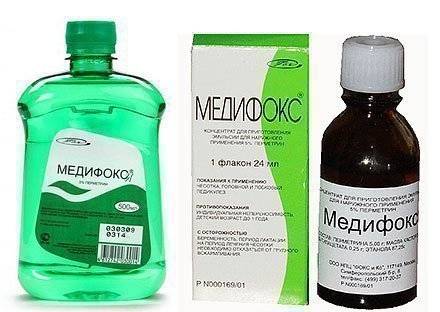 Медифокс – раствор из перметрина (5%). Развести его с водой. Действует препарат в течение 30 минут. Можно применять годовалым детям и женщинам во время беременности.